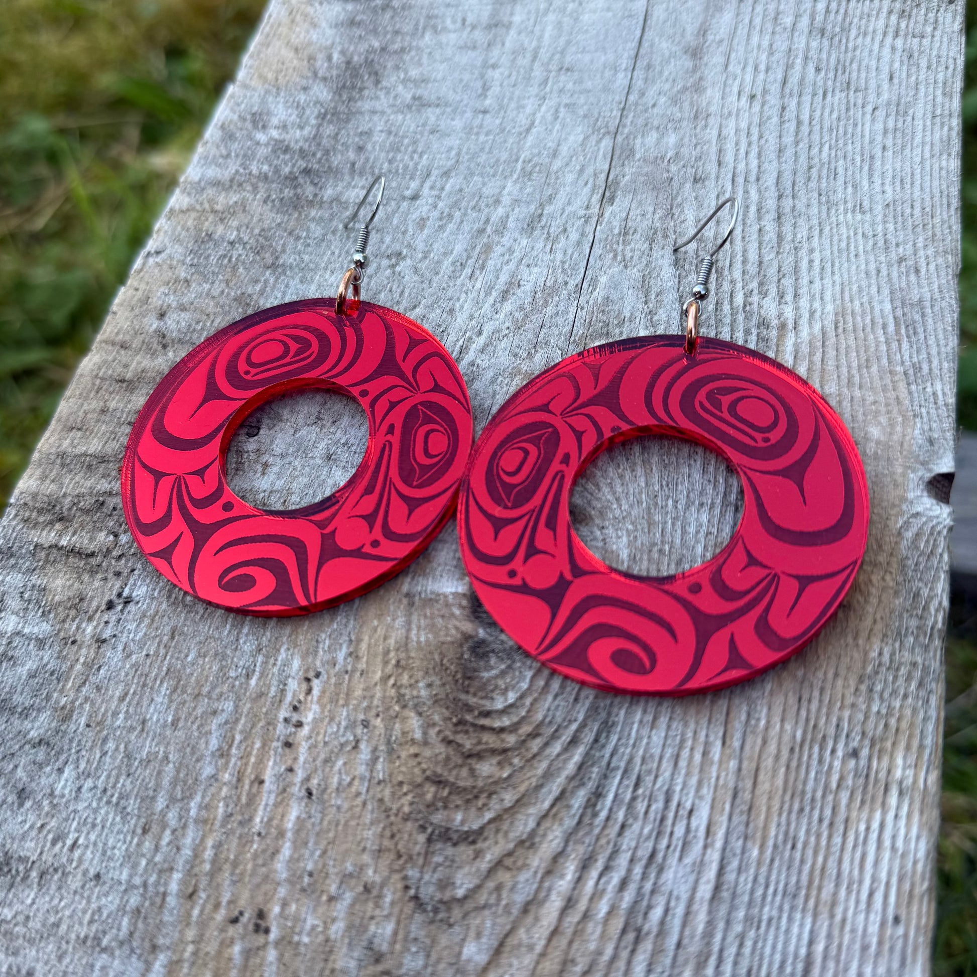 Red Haida Raven Acrylic Mirror Earrings